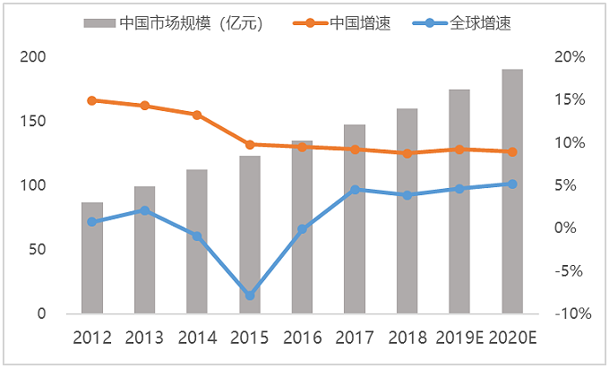 虽然中国硬面护理市场规模在2015年起增速有所趋缓,但增速仍处于较高水平,且高于全球增速。欧睿国际数据显示,2018年中国硬面护理市场规模为160亿元,增长率为8.7%,近5年的复合增长率达11.4%。未来两年,中国硬面护理的市场规模预计仍保持9%左右的增速。