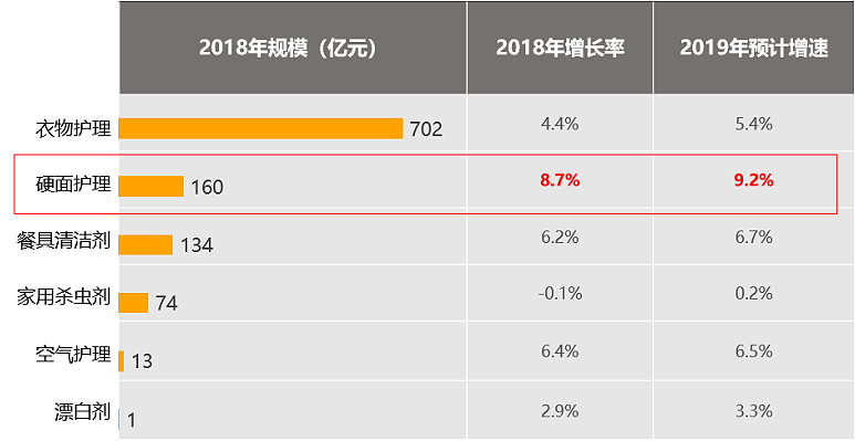 如果从整个家居清洁行业来看,硬面护理市场规模的增速明显快于衣物护理、餐具清洁等其他子行业。