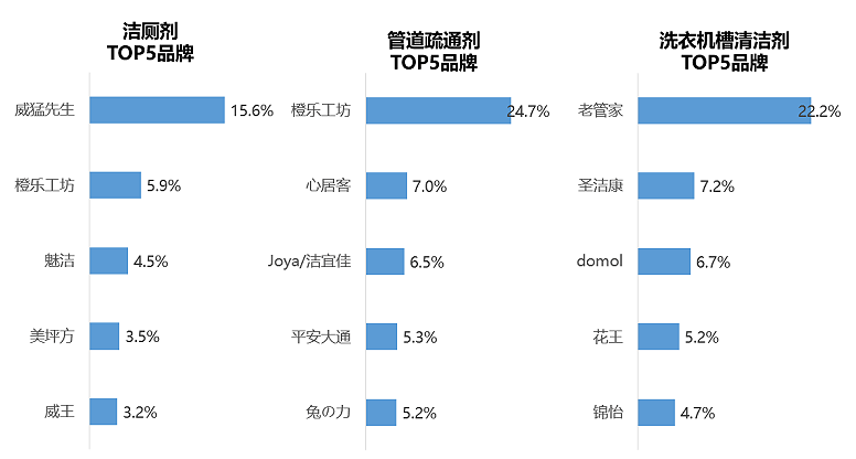 三、卫浴场景清洁剂头部品牌效应明显
